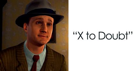 In this image, a 1940s detective from the video game l.a. Find gifs with the latest and newest hashtags! Can be used as content for research and analysis. The best memes from instagram, facebook, vine, and twitter about x to doubt. X doubt meme is used to express extreme suspicion about the truth of a given remark or comment.